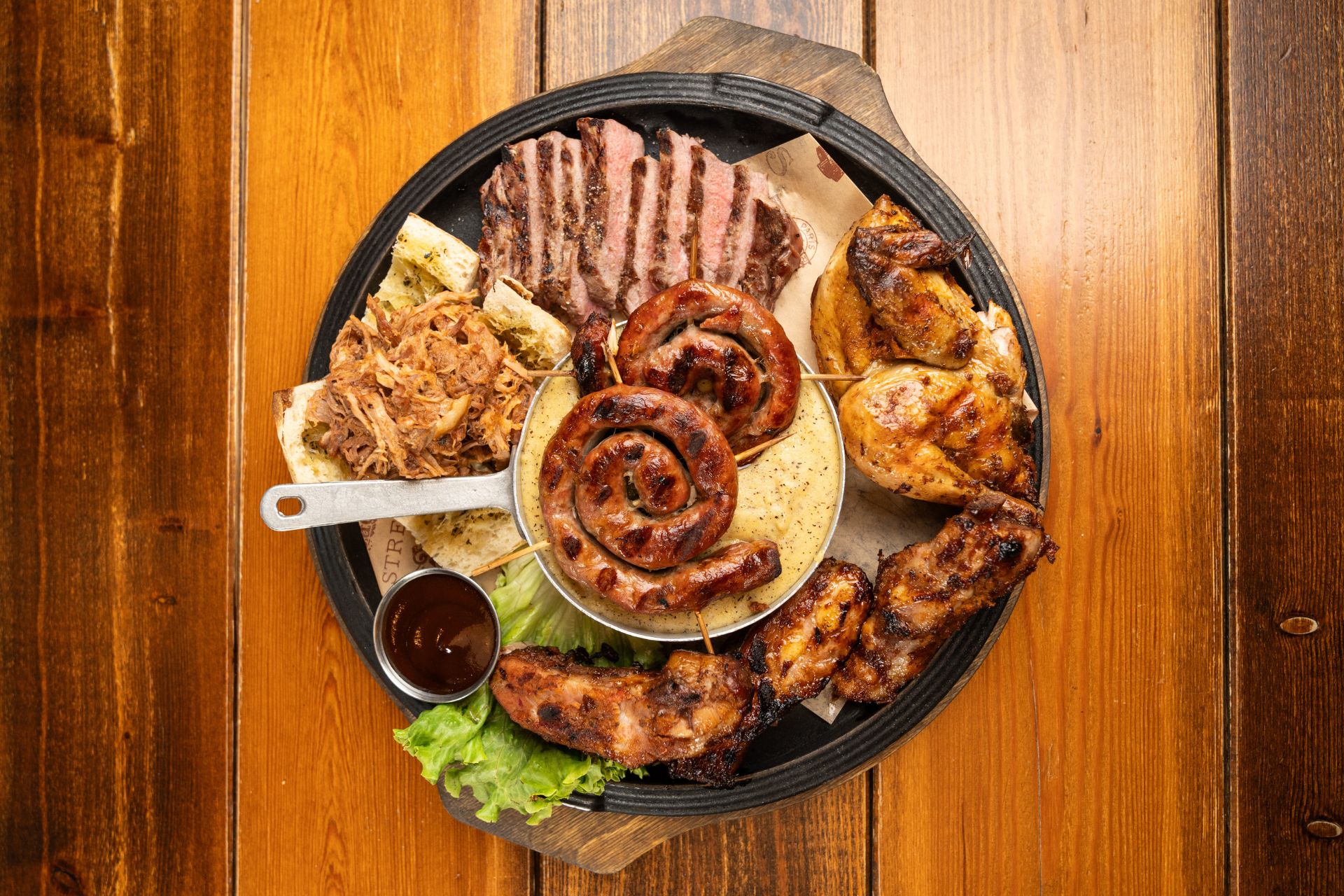La nostra GRIGLIATA XXL è composta da mezzo galletto, costine, controfiletto di manzo, salsiccia, pulled pork e crostini all'aglio, servita con polenta taragna.